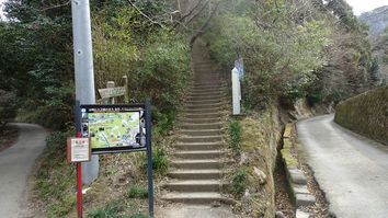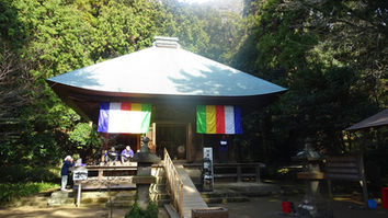 線路沿いの道を歩き、登山口を神武寺方面へ、ゆっくりと足の感触を確かめながら苔むした山道を登りはじめる。山門をくぐり薬師堂を参拝して尾根道に上がる。巨岩の割れ目やクサリ場過ぎ、山頂広場に出る。山頂展望台から追浜工業団地や横須賀軍港を望む。